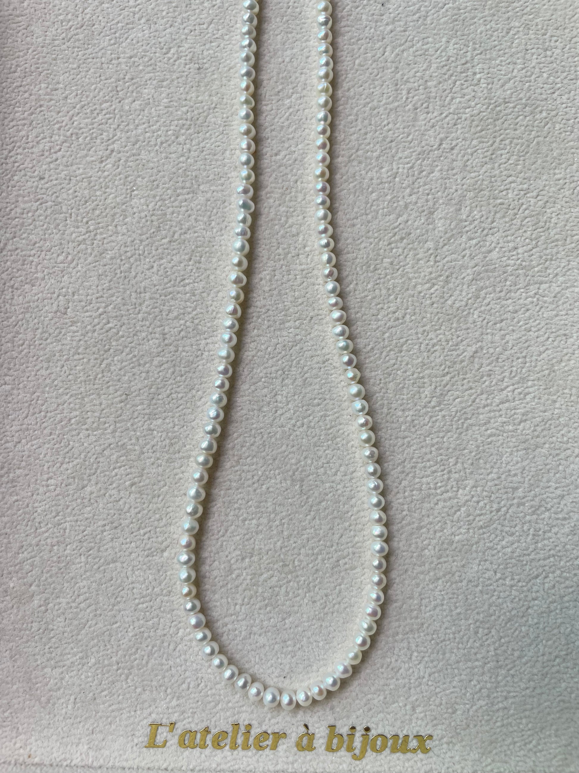 Chiếc vòng cổ này sở hữu vẻ đẹp cổ điển và tinh tế với chuỗi ngọc trai nước ngọt dáng tròn đều, đường kính 4mm. Từng viên ngọc được tuyển chọn kỹ lưỡng, bề mặt óng ánh ánh ngũ sắc nhẹ nhàng, tạo nên vẻ đẹp thanh lịch vượt thời gian. Thiết kế tối giản nhưng sang trọng này là lựa chọn hoàn hảo cho những ai yêu thích phong cách truyền thống mà vẫn muốn giữ nét hiện đại và tinh tế.
