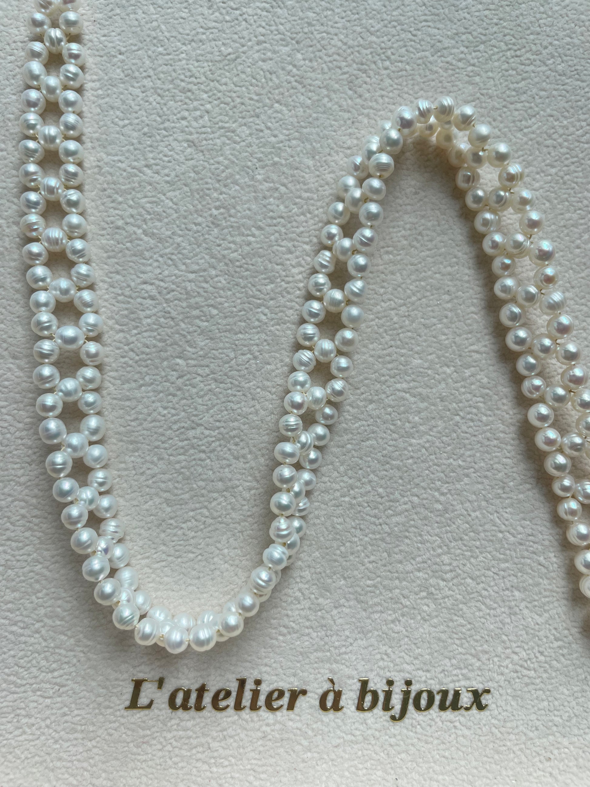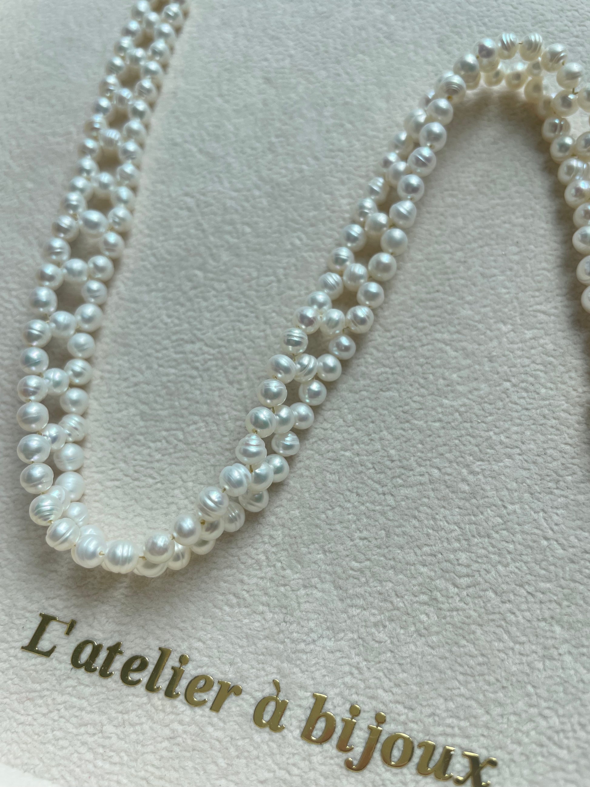 Vòng cổ choker ngọc trai 5mm đan dây