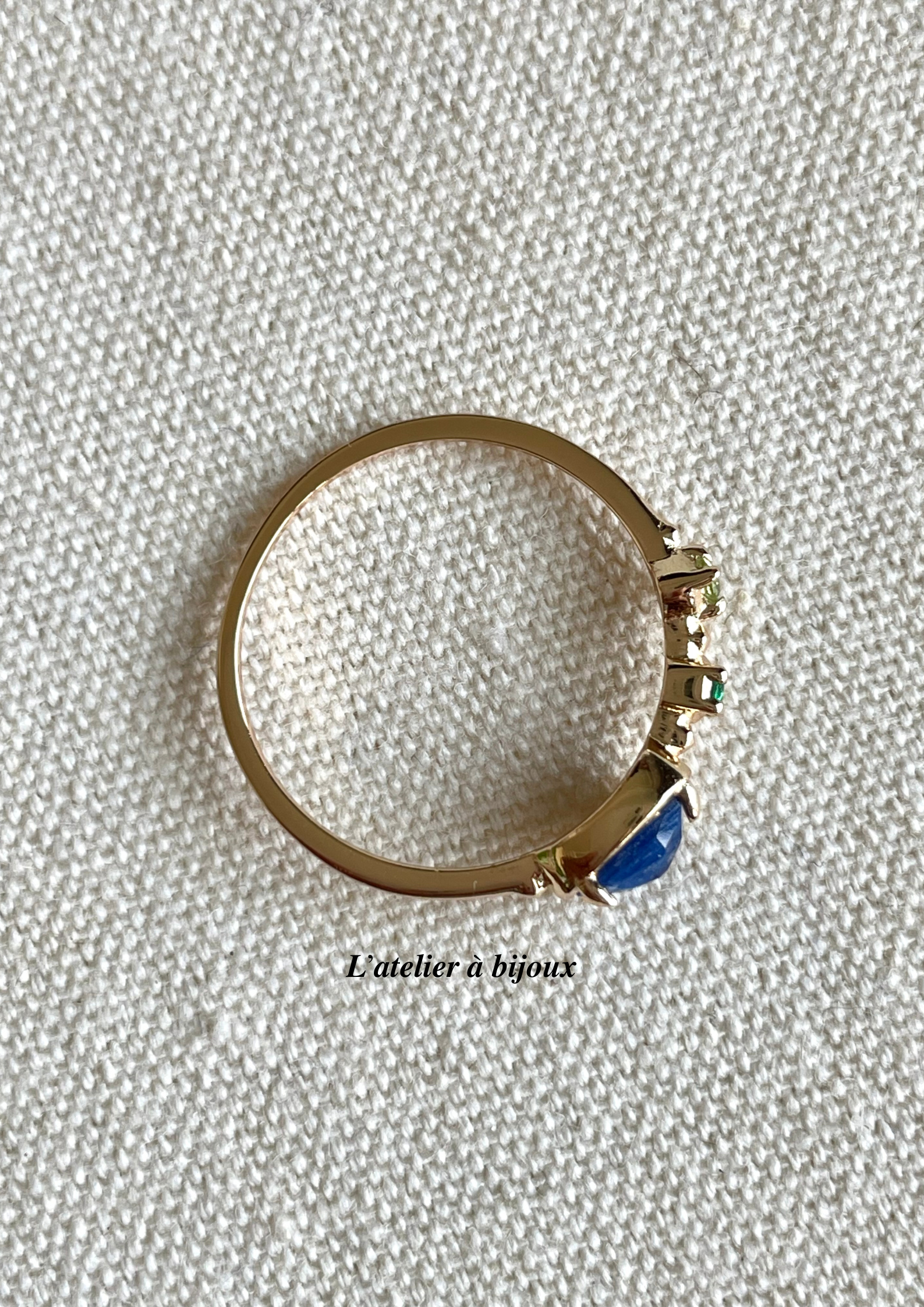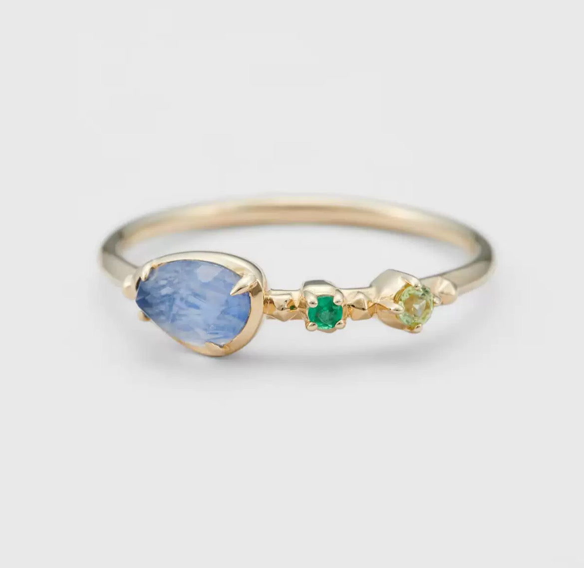 🔹 Thiết kế: Nhẫn bản thanh mảnh, điểm nhấn đá Kyanite sang trọng