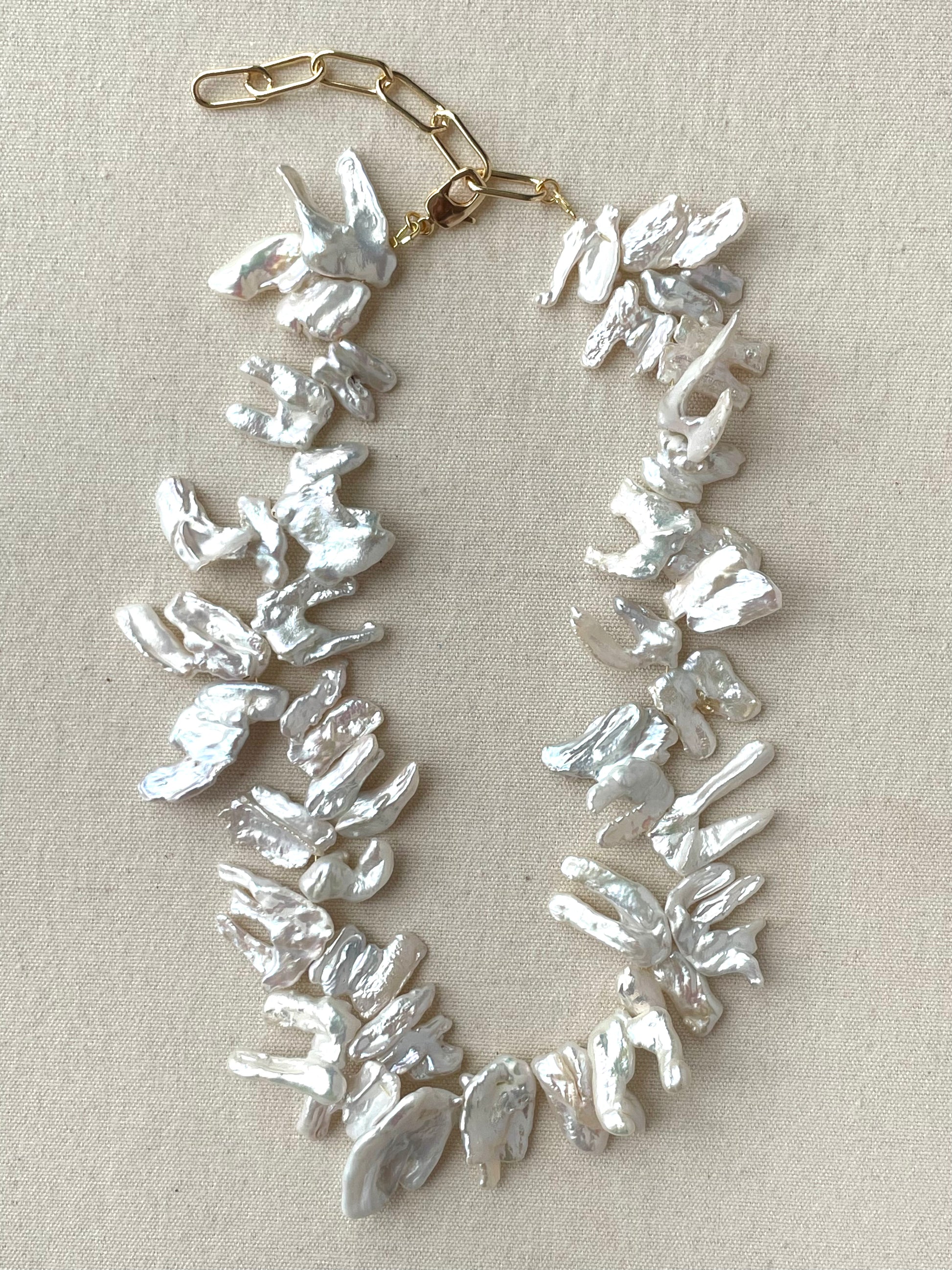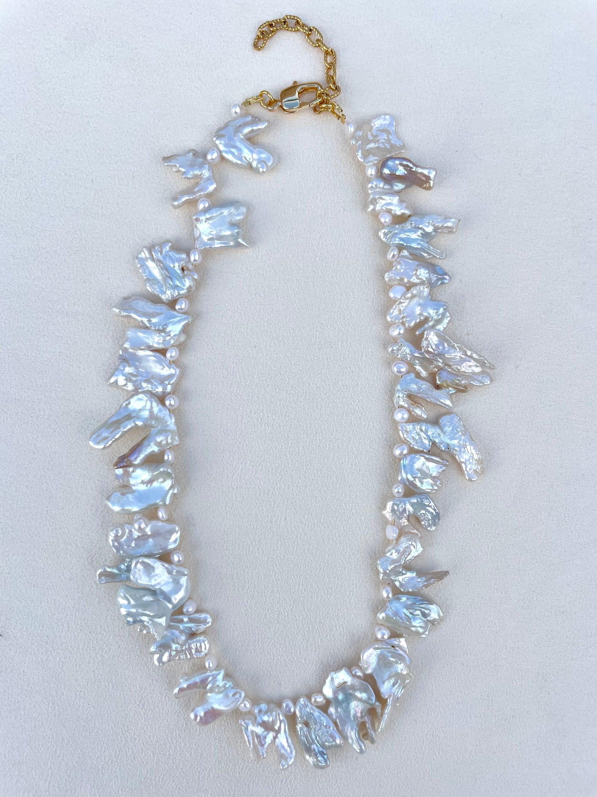 Được chế tác từ những viên ngọc trai nước ngọt baroque độc đáo, mỗi viên sở hữu hình dáng tự nhiên và ánh sắc riêng biệt, tạo nên một thiết kế sang trọng và khác biệt.