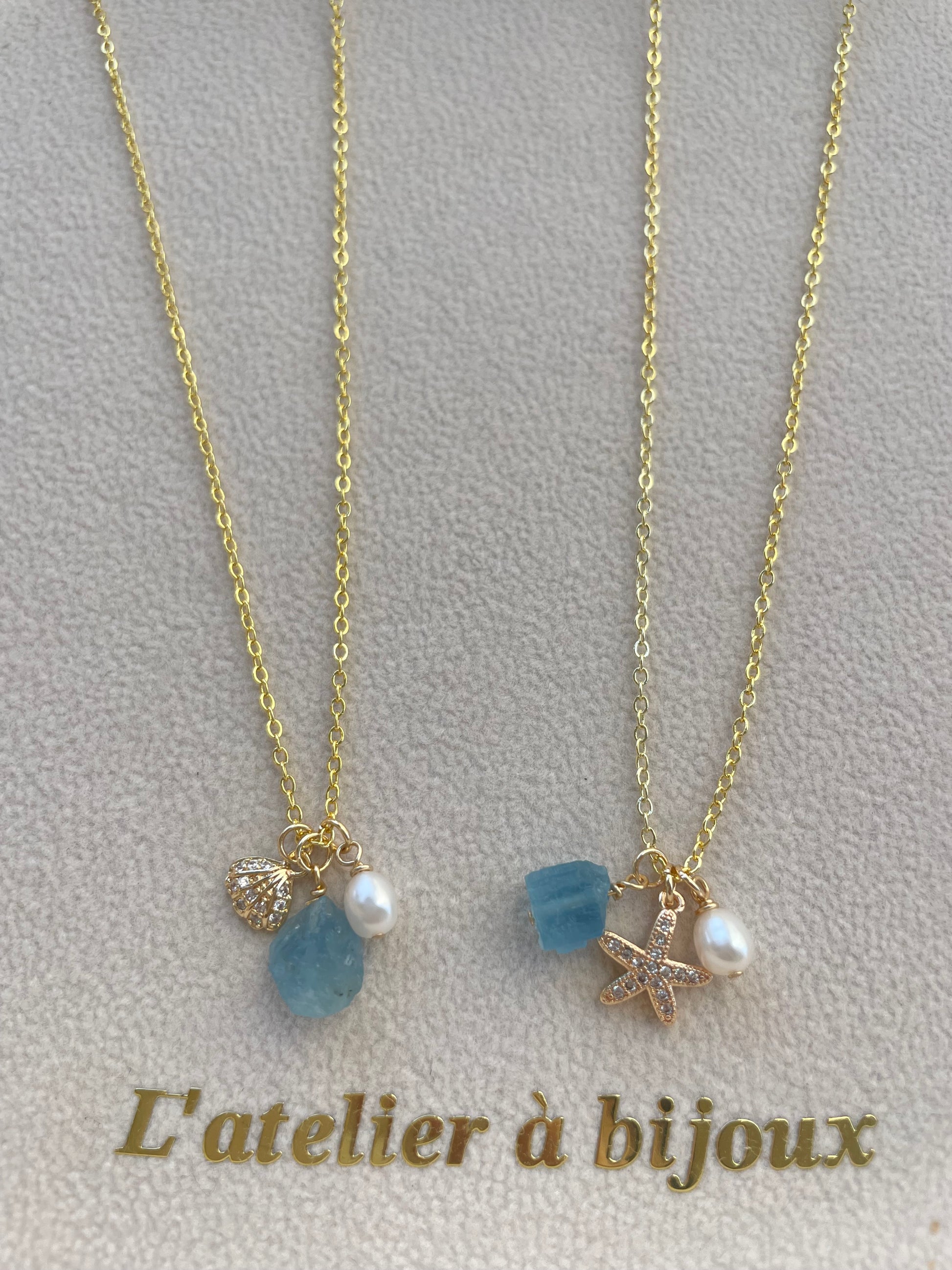 Chiếc vòng cổ Amelia Charm mang hơi thở đại dương với sự kết hợp tinh xảo giữa hạt đá Aquamarine xanh biển và ngọc trai nước ngọt óng ánh. Thiết kế được chế tác thủ công tỉ mỉ, mang đến vẻ đẹp thanh lịch, nhẹ nhàng nhưng đầy cuốn hút. Sắc xanh dịu của Aquamarine hòa quyện cùng ánh ngọc trai mềm mại, tạo nên một tổng thể tươi mát và sang trọng, giúp bạn thêm điểm nhấn nổi bật cho mọi phong cách trang phục.