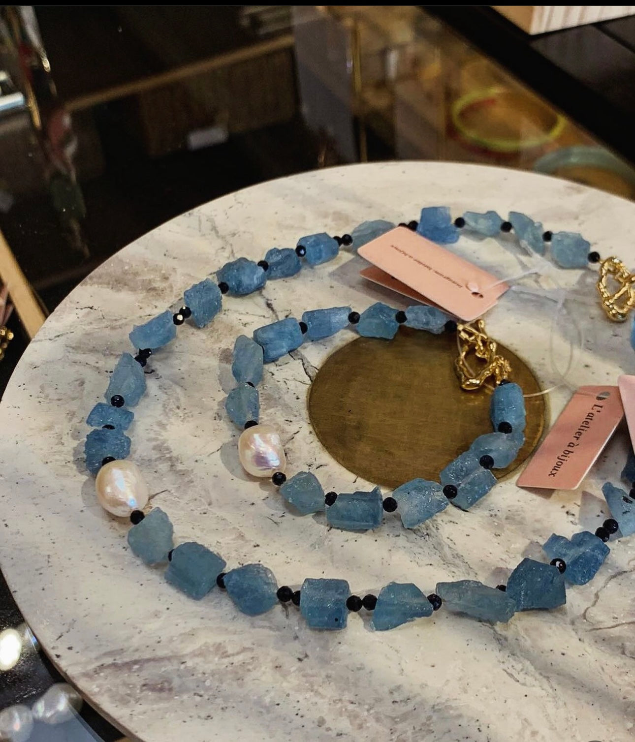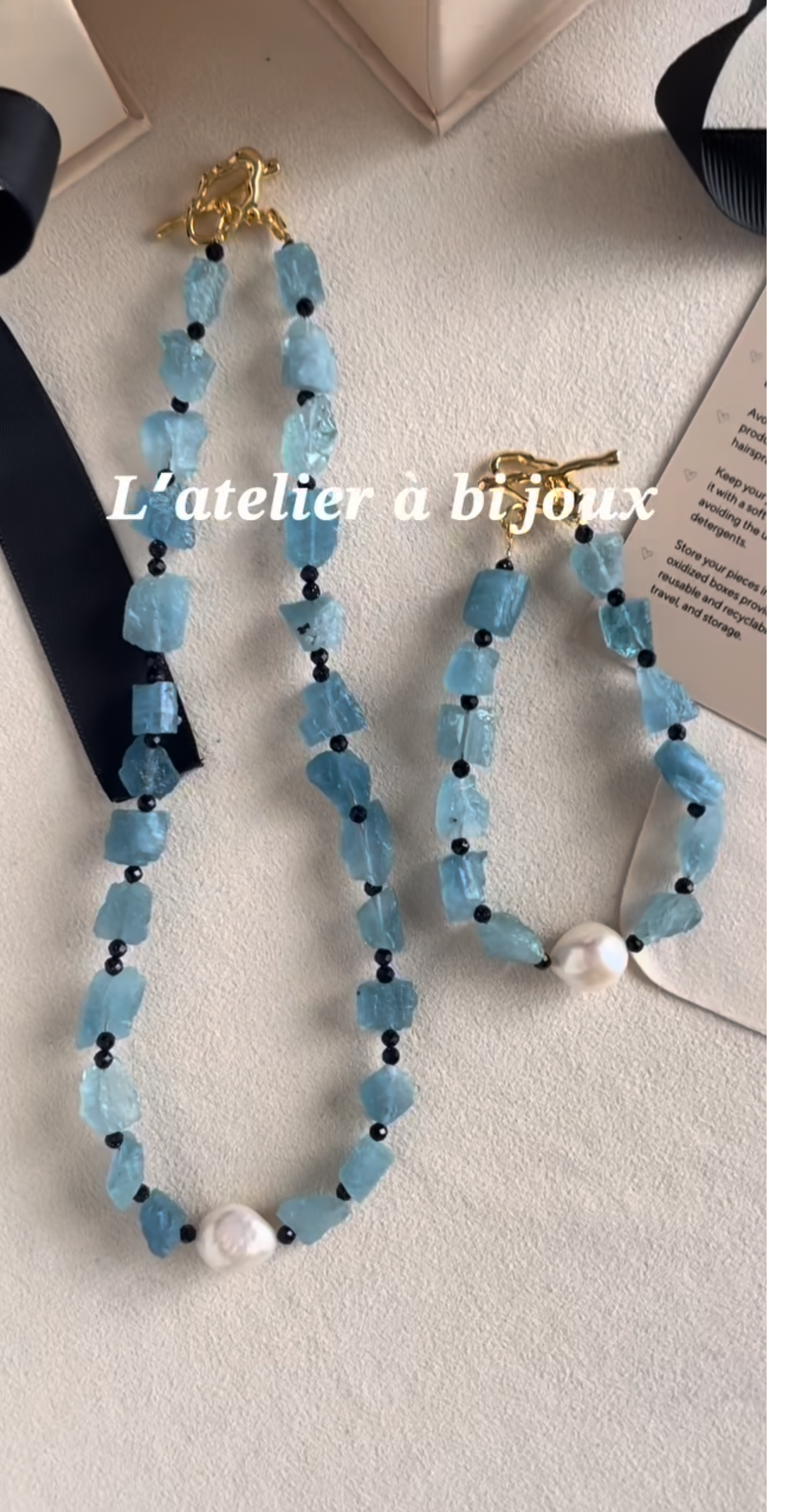 Hòa mình vào sắc xanh dịu mát của đại dương với Aquamarine Necklace – thiết kế tinh xảo mang đến cảm giác thanh bình và tươi mới. Được chế tác từ đá Aquamarine tự nhiên, kết hợp cùng blue-vein độc đáo và những viên ngọc trai nước ngọt sáng bóng, sản phẩm tái hiện vẻ đẹp thuần khiết của biển cả, đồng thời mang đến sự thanh lịch và quý phái cho người đeo.