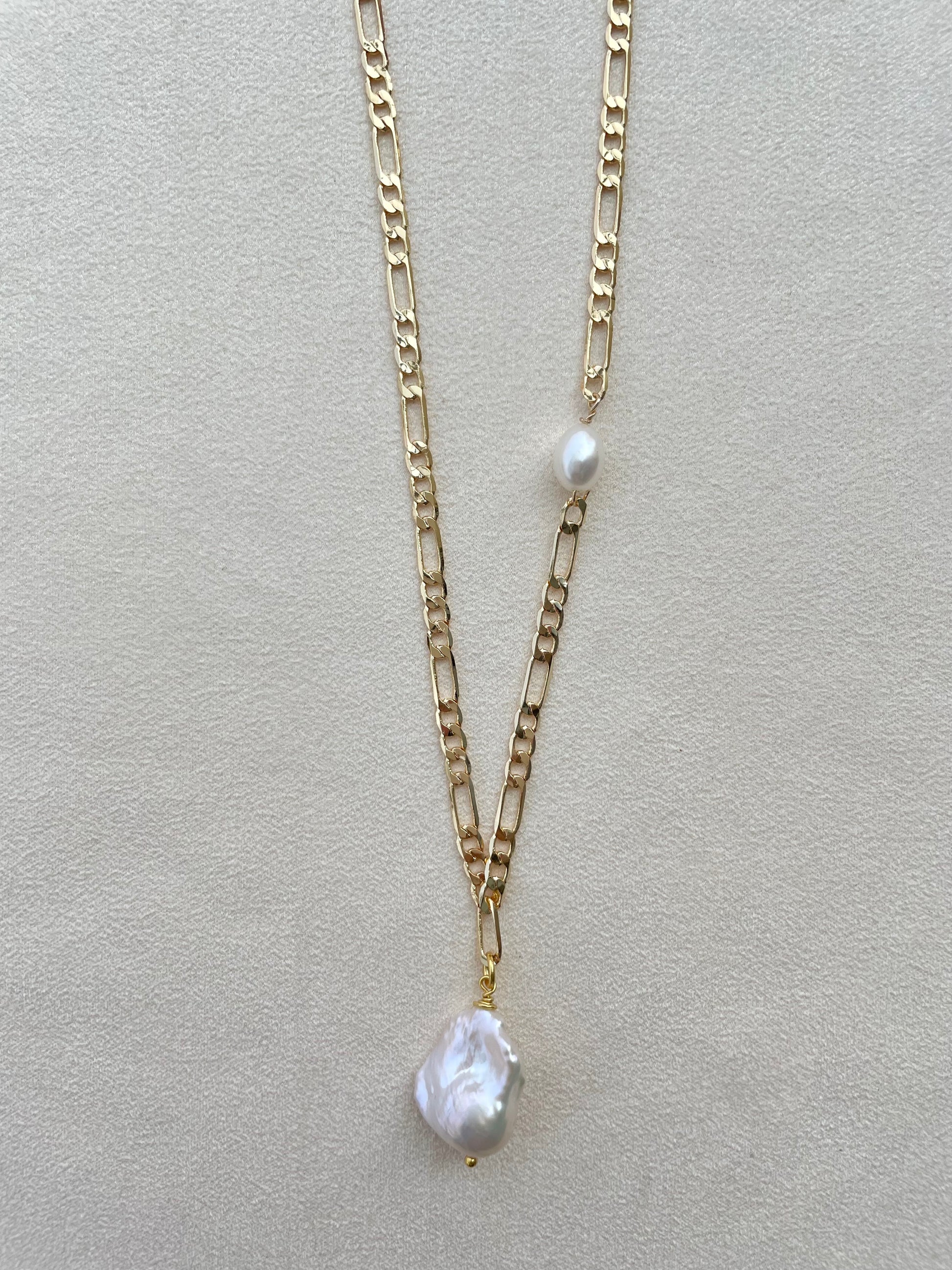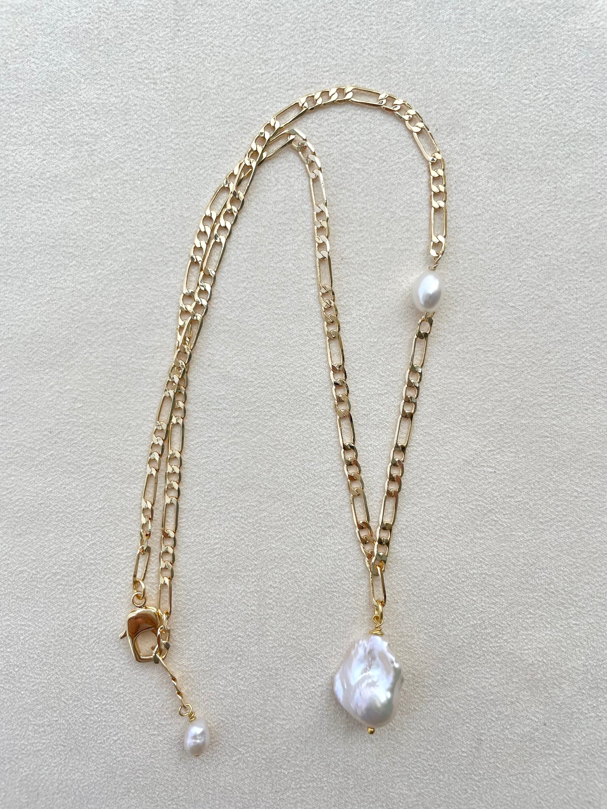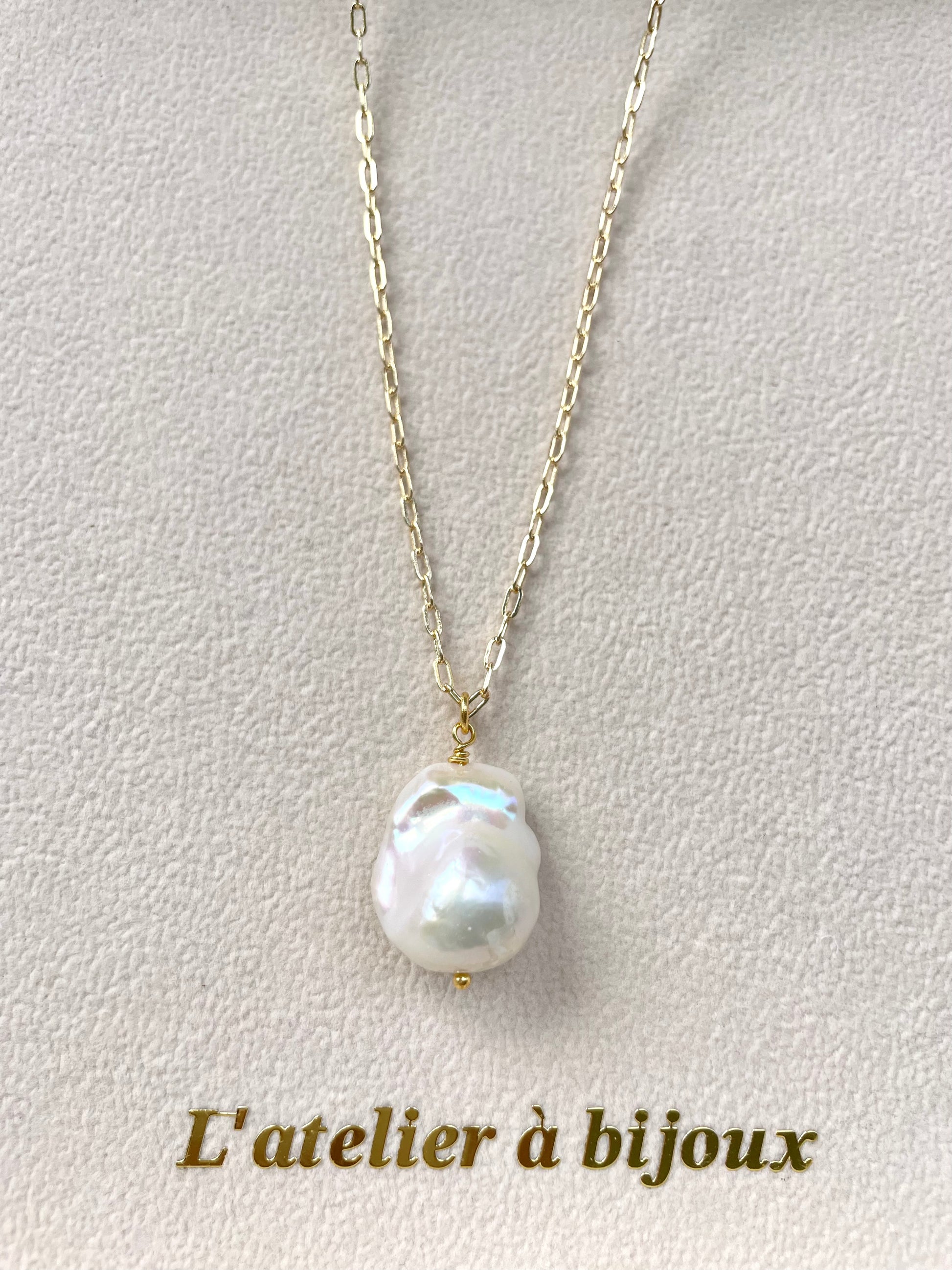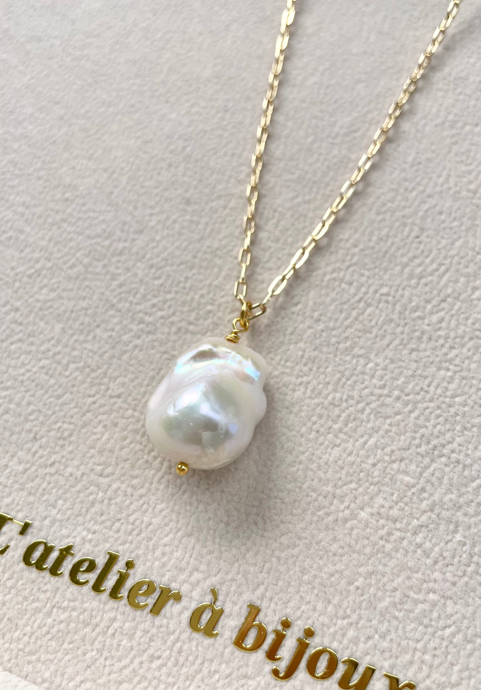 Chiếc vòng cổ ngọc trai Baroque đơn phối dây vàng là một thiết kế thanh lịch và hiện đại, kết hợp giữa dây xích vàng mảnh bản vừa và một viên ngọc trai Baroque tự nhiên được tuyển chọn kỹ lưỡng. Ngọc trai sở hữu hình dáng độc bản với ánh xà cừ óng ánh, tạo nên vẻ tinh xảo nhưng phóng khoáng cho thiết kế.