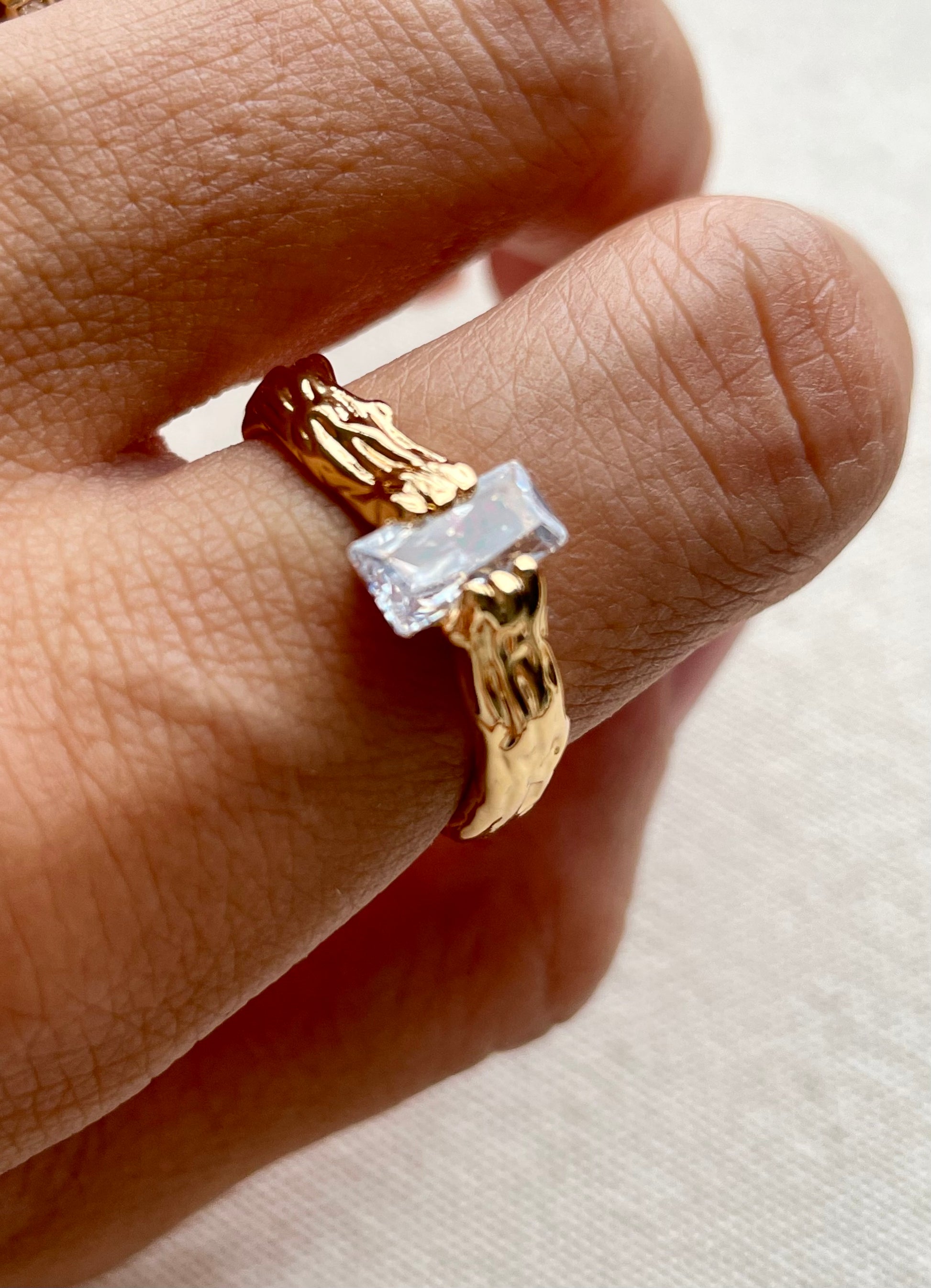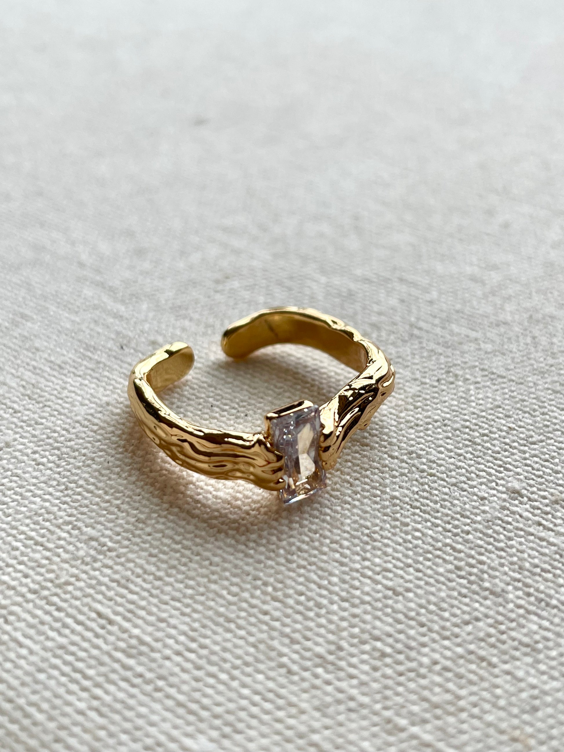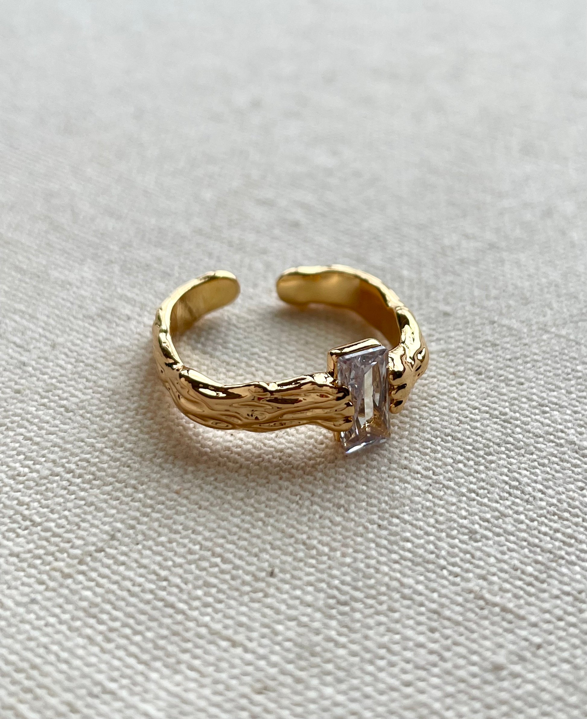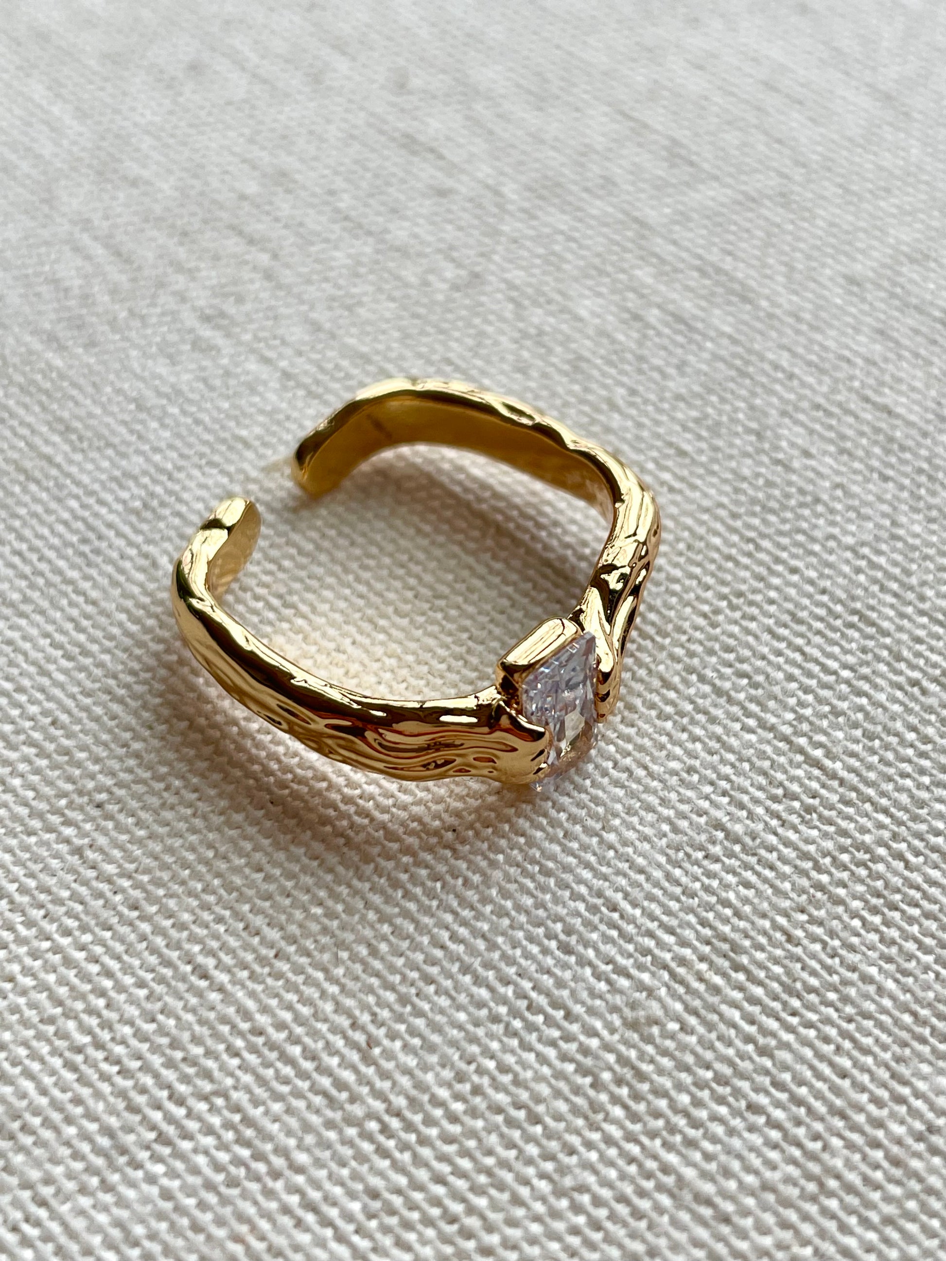 Chiếc nhẫn Carrie mang thiết kế hiện đại với điểm nhấn độc đáo: phần mở điều chỉnh linh hoạt, giúp ôm vừa vặn mọi kích thước ngón tay, mang lại sự thoải mái tối đa khi đeo. Được chế tác từ hợp kim cao cấp phủ mạ vàng 18K sang trọng, chiếc nhẫn trở nên nổi bật với đá zircon trắng được cắt mài tinh xảo, tỏa ánh sáng lấp lánh đầy cuốn hút.