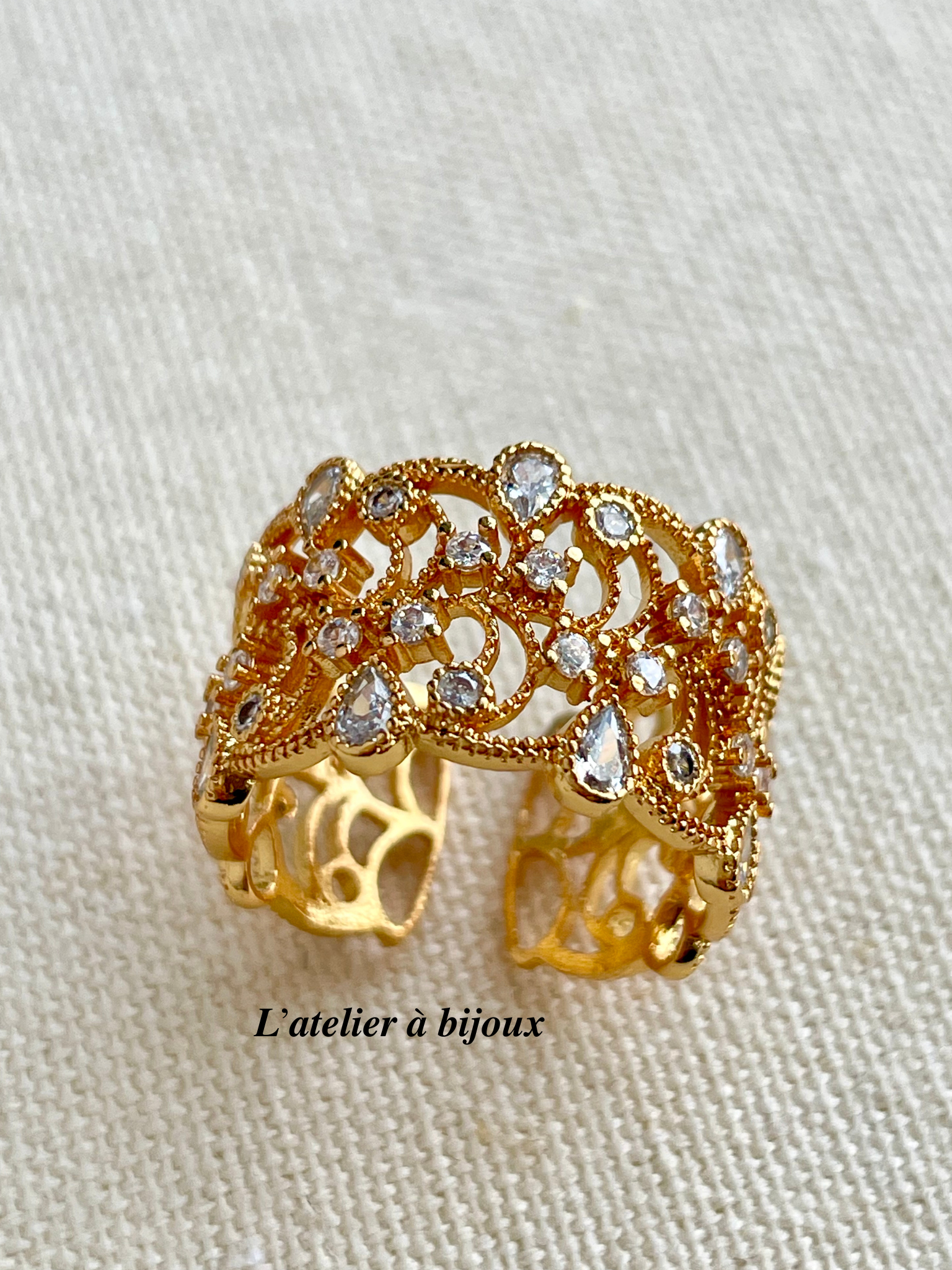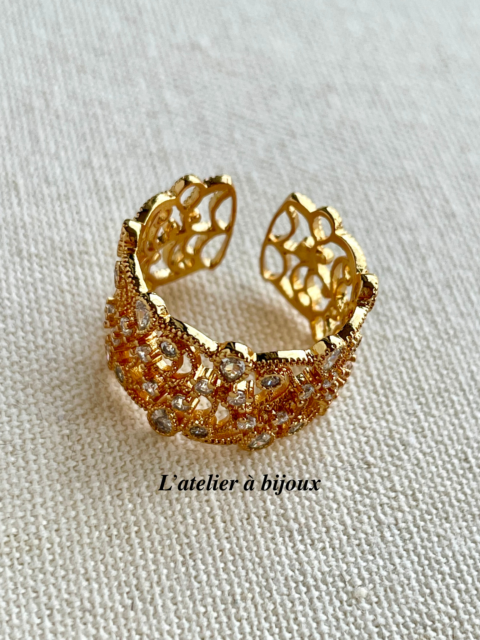 🔹 Thiết kế: Nhẫn ren đính đá tinh xảo, bản rộng 1.2cm
