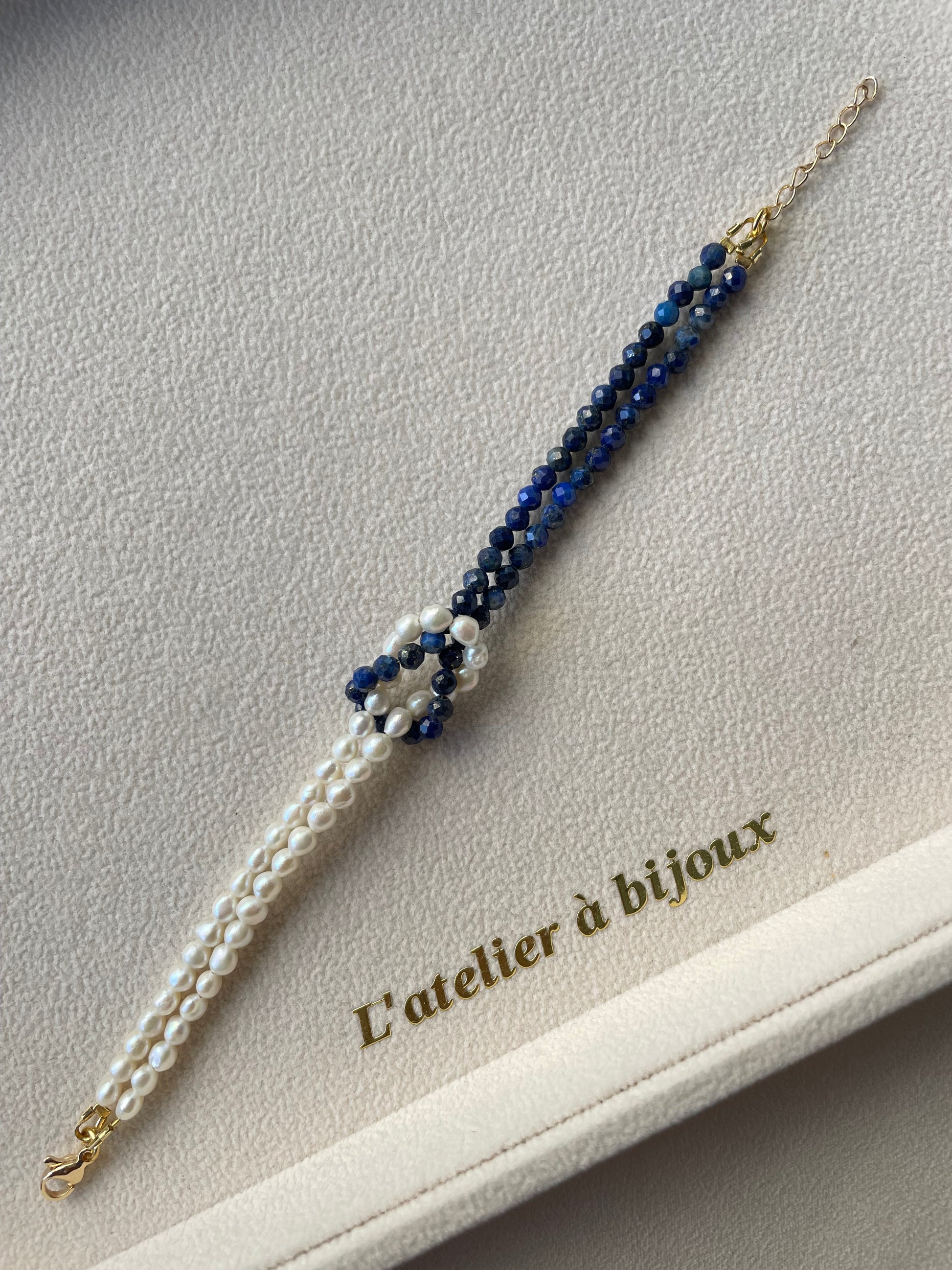 Vòng tay nút thắt ngọc trai Ivy & đá Lazurite