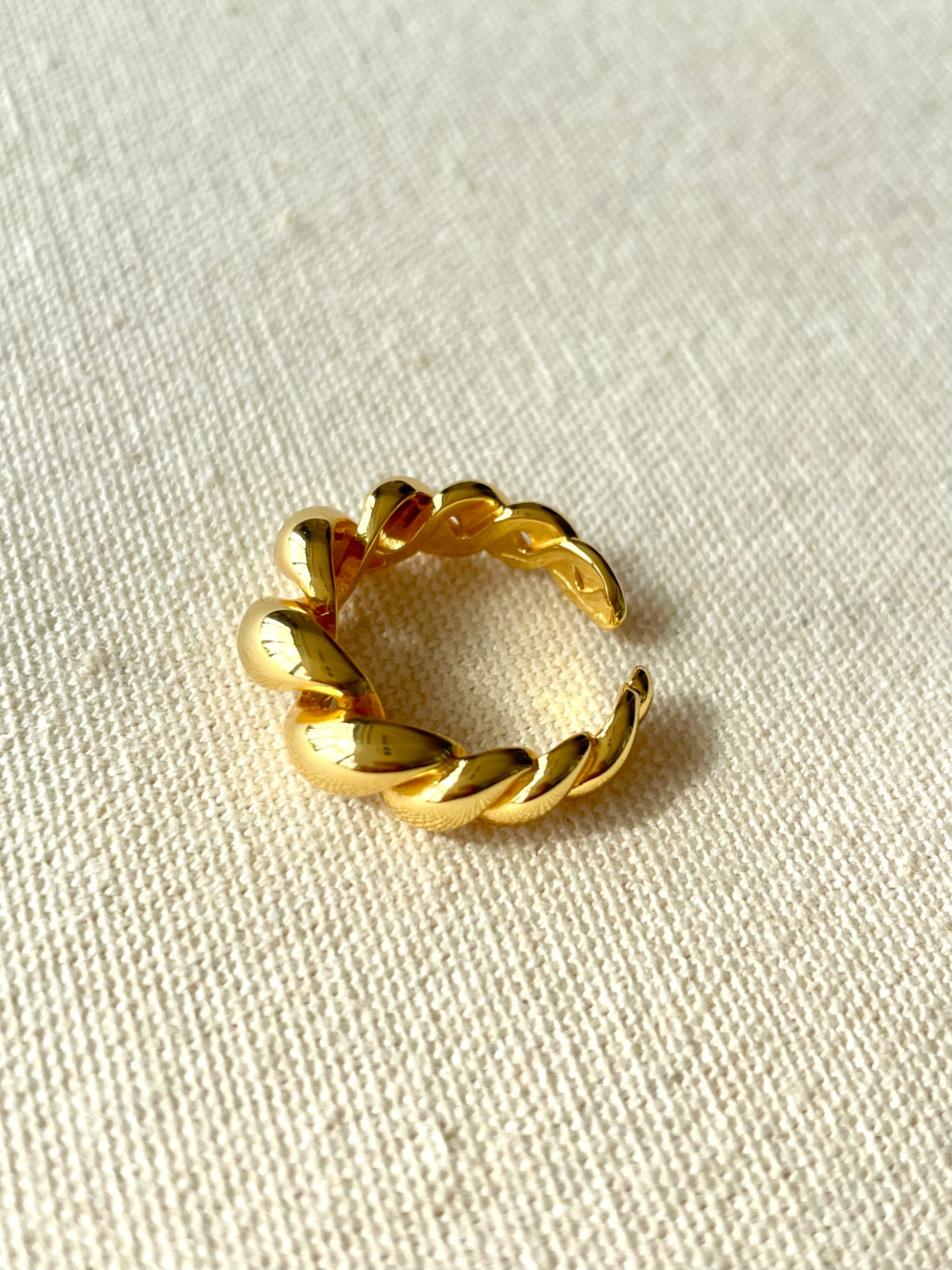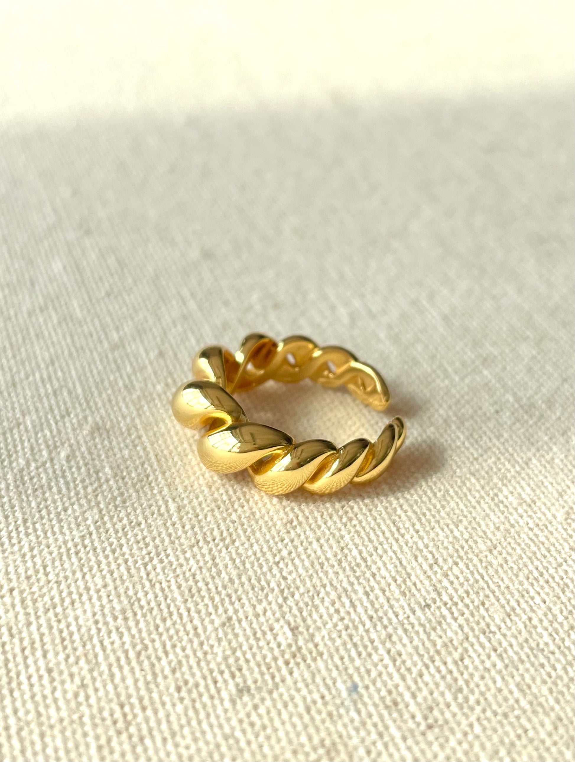 Chiếc nhẫn Judi được chế tác từ bạc S925 cao cấp, phủ mạ vàng 18K sang trọng, mang thiết kế xoắn cách điệu độc đáo, tạo nên vẻ đẹp hiện đại xen lẫn chút cổ điển. Bề mặt nhẫn được xử lý thủ công tỉ mỉ, các đường nét uốn lượn mềm mại giúp tạo hiệu ứng bắt sáng tinh tế dưới mọi góc nhìn.