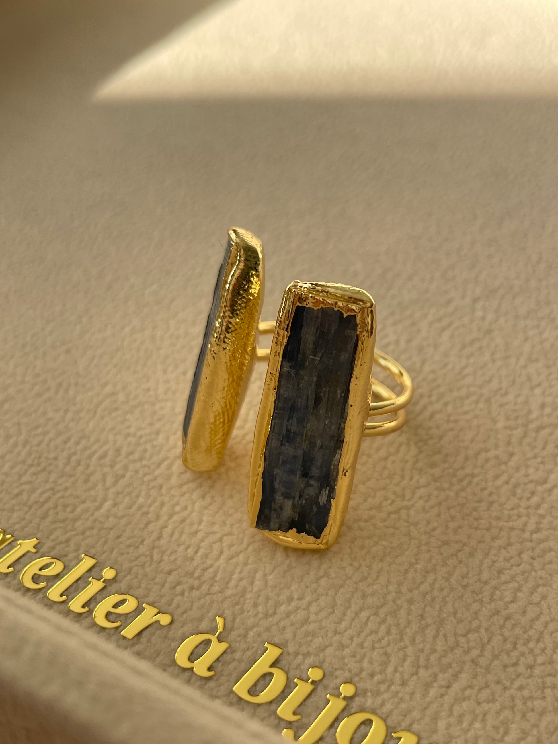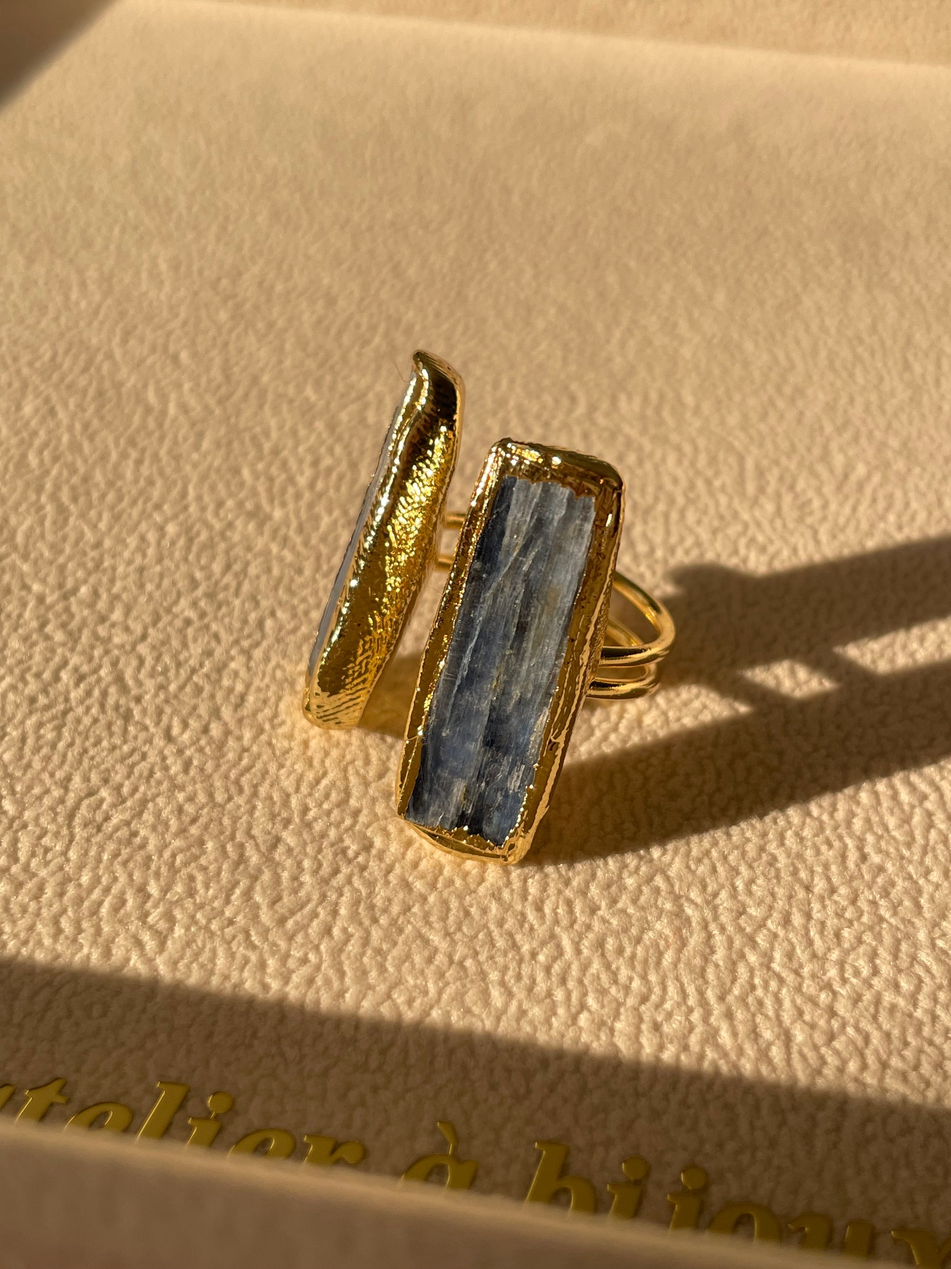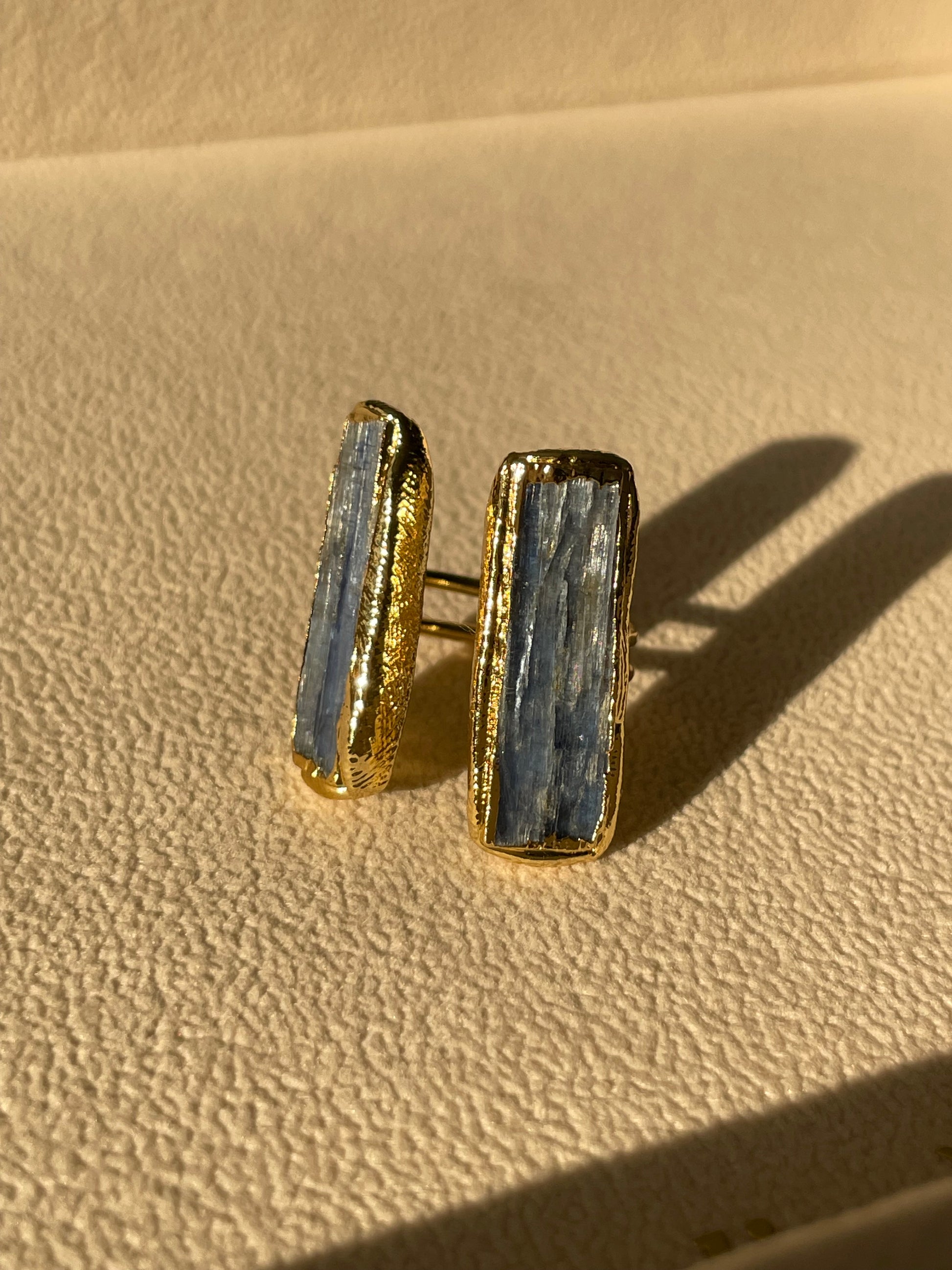 Khám phá vẻ đẹp huyền bí với chiếc nhẫn đá Kyanite sang trọng và đầy cuốn hút. Được chế tác thủ công từ kim loại mạ vàng 18K cao cấp, ôm trọn viên đá Kyanite tự nhiên với sắc xanh lam độc đáo, nhẫn mang đến cảm giác vừa hiện đại vừa thanh lịch.