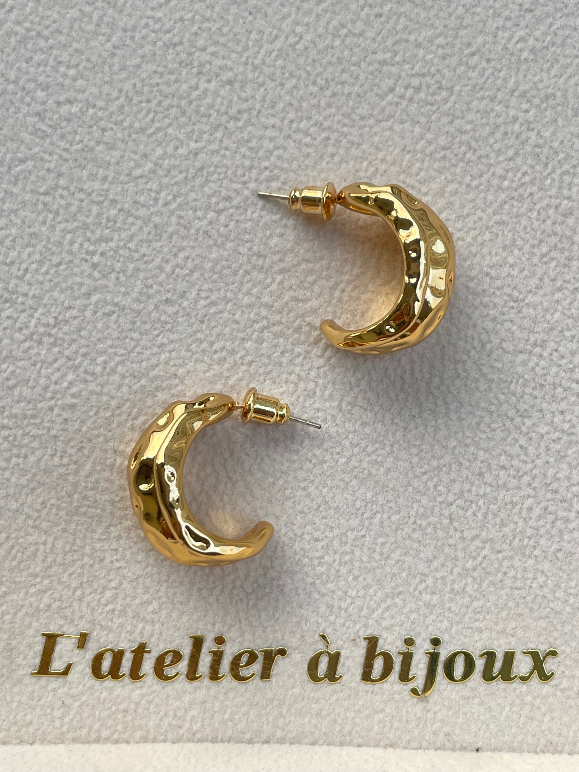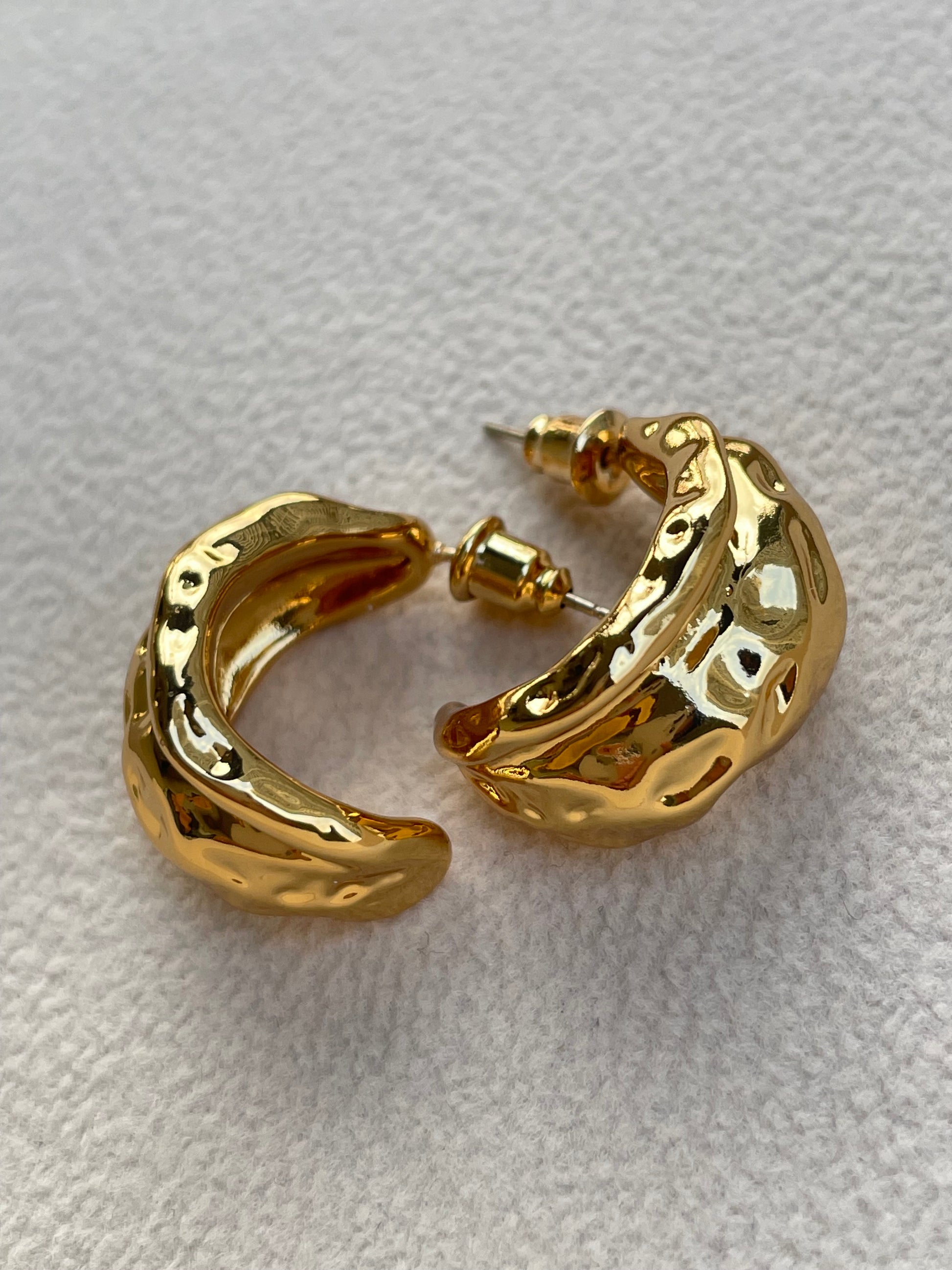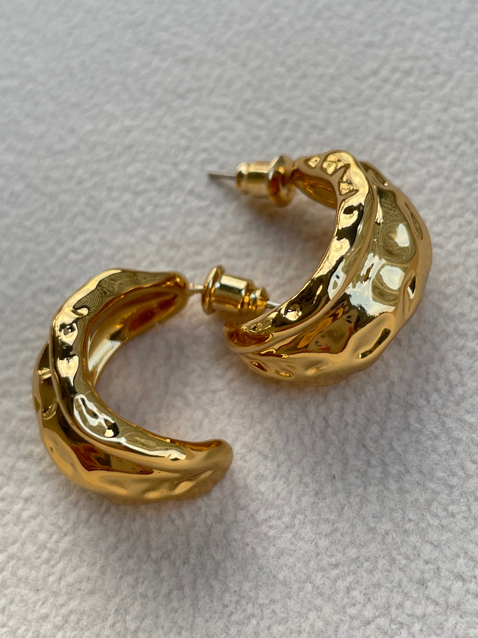 Đôi hoa tai vàng này mang thiết kế bản dày hiện đại với bề mặt chạm vân tinh xảo, tạo hiệu ứng ánh sáng lấp lánh và cuốn hút ở mọi góc nhìn. Được chế tác từ kim loại mạ vàng 18k cao cấp, sản phẩm vừa sang trọng vừa cá tính, dễ dàng trở thành điểm nhấn cho nhiều phong cách khác nhau.