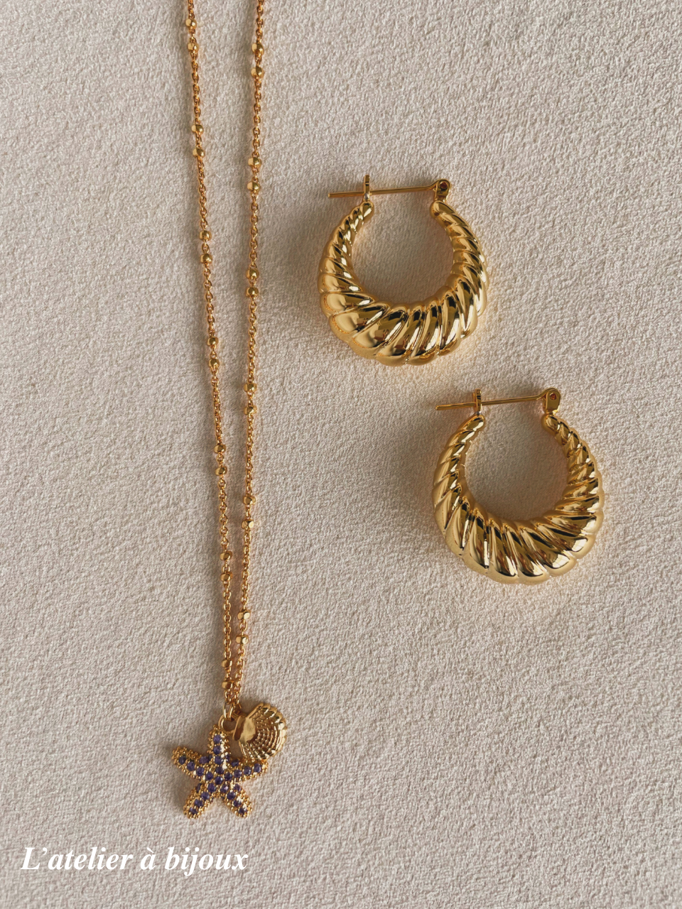 Hoa tai vòng Luna mang đến vẻ đẹp thanh lịch huyền bí, lấy cảm hứng từ ánh sáng lung linh của mặt trăng. Được chế tác tinh xảo với thiết kế mô phỏng những dải dây vàng mềm mại, đôi hoa tai này tạo nên sự cuốn hút rực rỡ và nâng tầm phong cách của bạn trong mọi khoảnh khắc. Hoa tai Luna là món trang sức lý tưởng cho những ai yêu thích vẻ đẹp sang trọng pha chút huyền ảo.