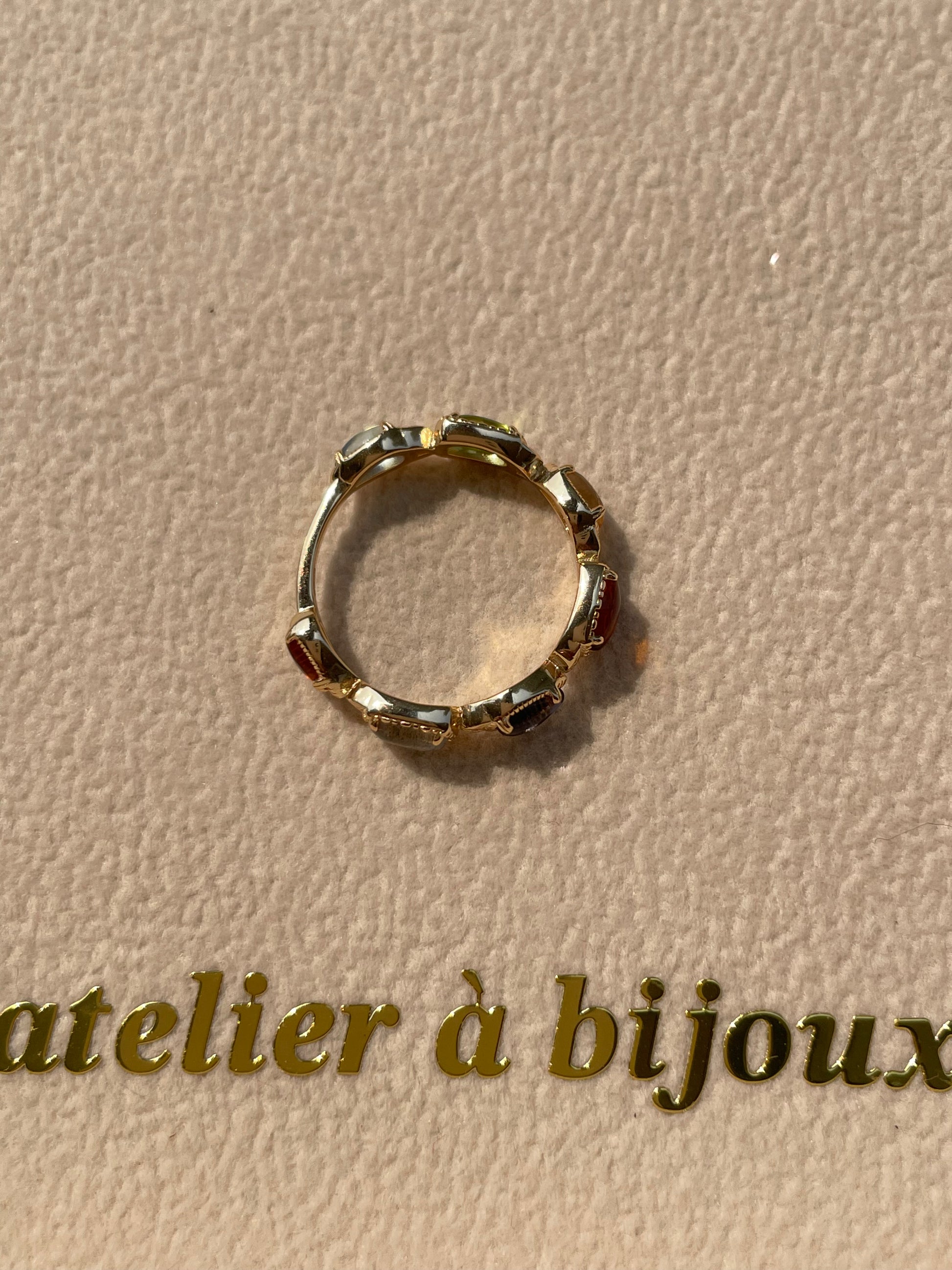 🔹 Thiết kế: Nhẫn vòng tròn, phối 7 viên đá thiên nhiên đa sắc
