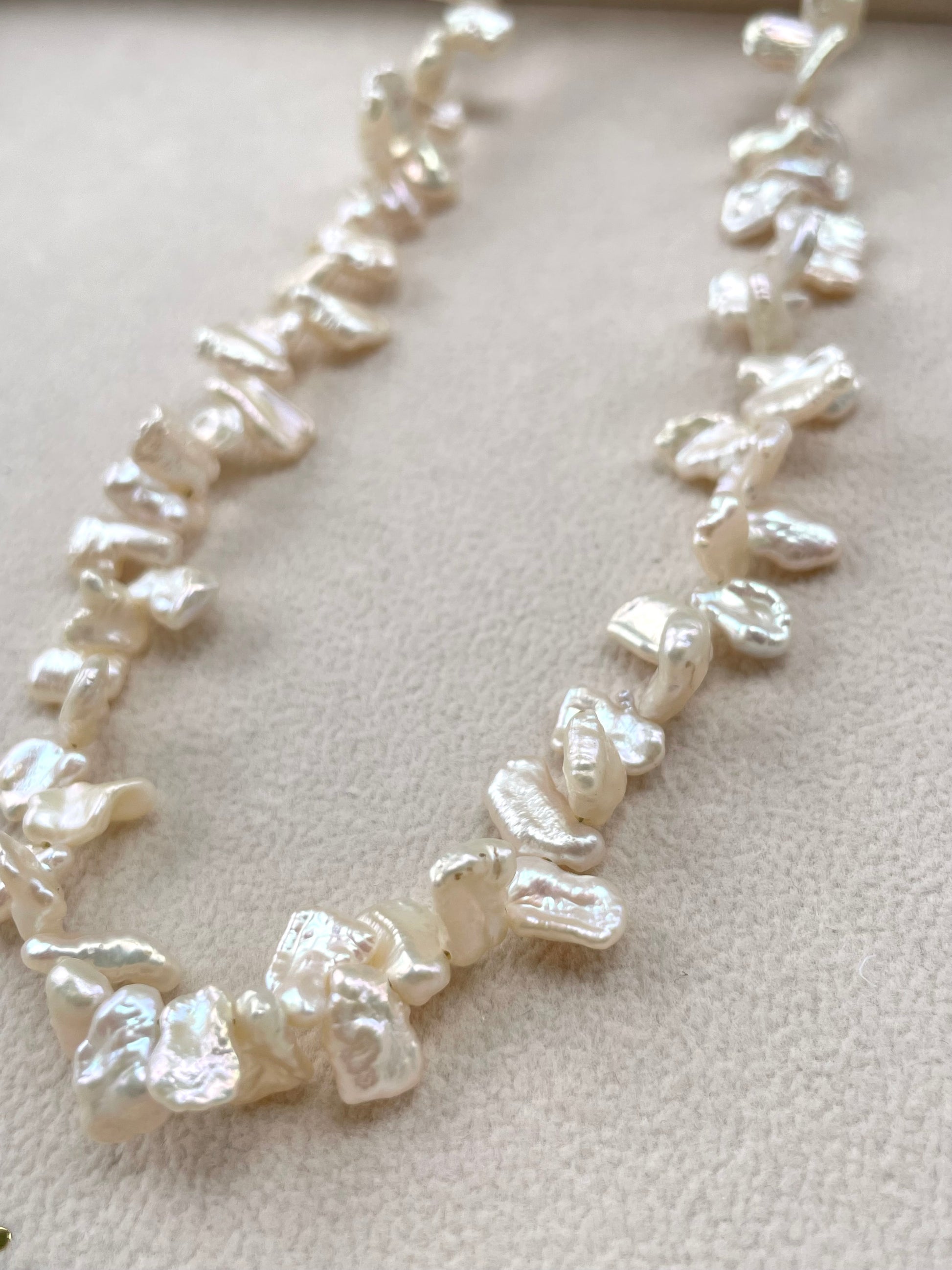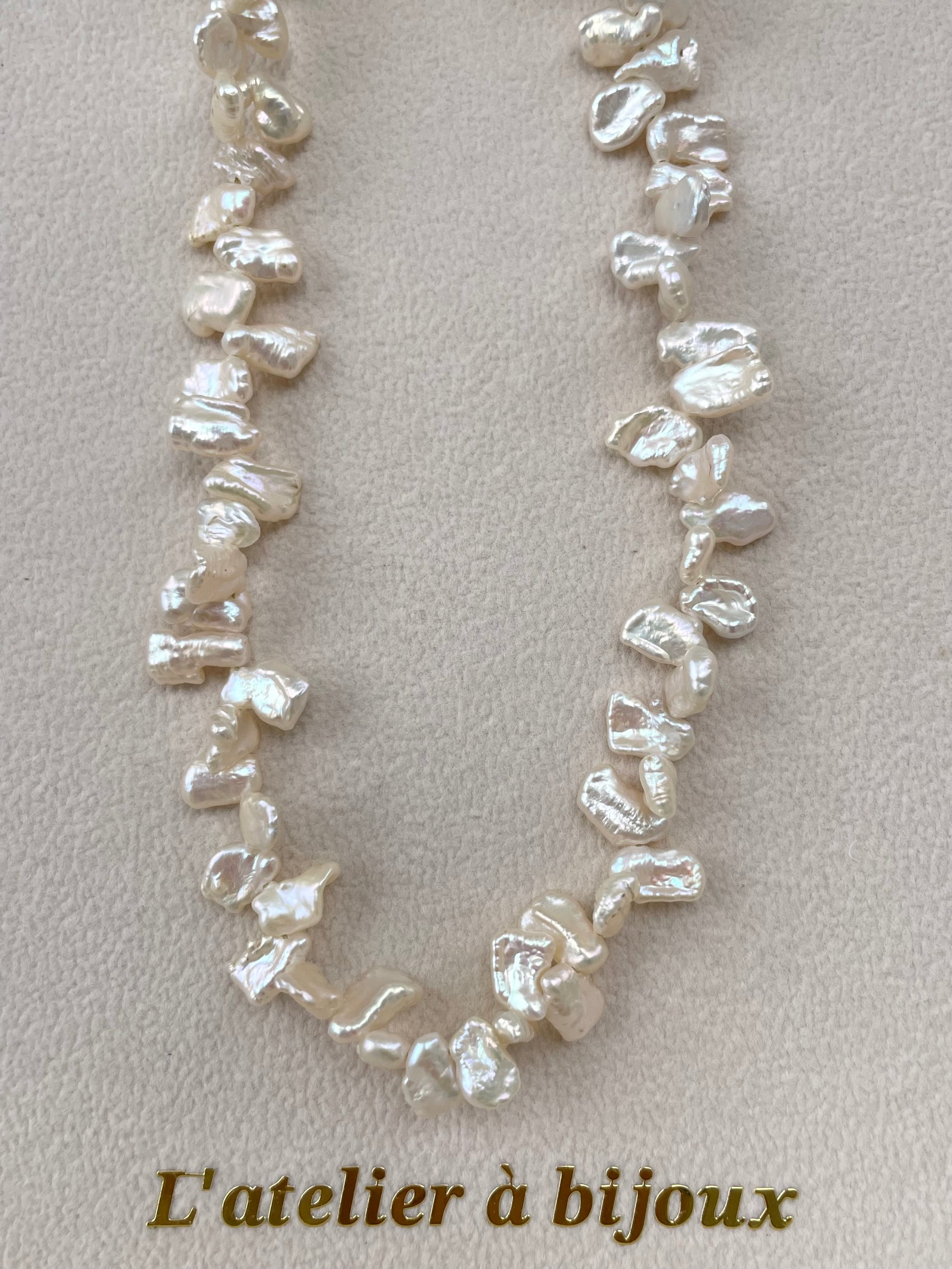 Chiếc vòng cổ ngọc trai Baroque tự nhiên là một thiết kế độc bản, tôn vinh vẻ đẹp mộc mạc nhưng đầy cuốn hút của thiên nhiên. Được chế tác từ những viên ngọc trai Baroque cao cấp với hình dáng bất quy tắc, mỗi viên đều sở hữu ánh xà cừ óng ánh, phản chiếu ánh sáng dịu dàng và khác biệt.