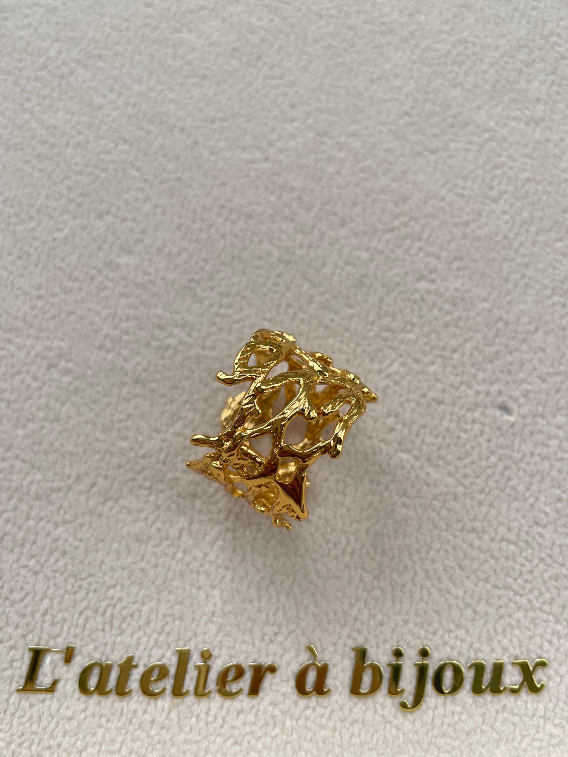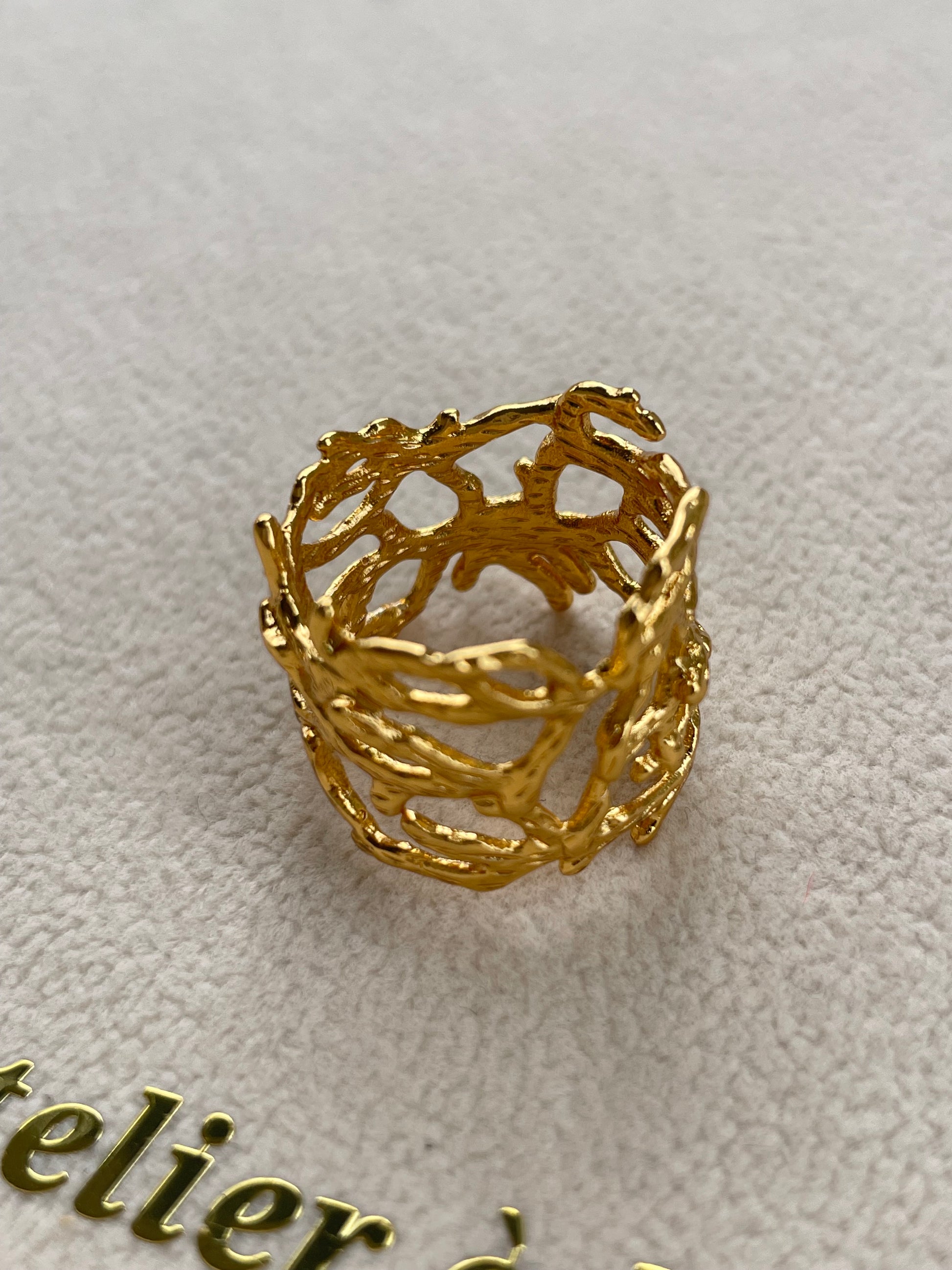 Chiếc nhẫn Quinee nổi bật với thiết kế đậm chất nghệ thuật, lấy cảm hứng từ những đường nét tự nhiên mềm mại nhưng đầy cá tính. Được chế tác từ kim loại mạ vàng 18K cao cấp, sản phẩm mang đến vẻ sang trọng và cuốn hút, tạo nên một điểm nhấn tinh tế cho phong cách hiện đại.