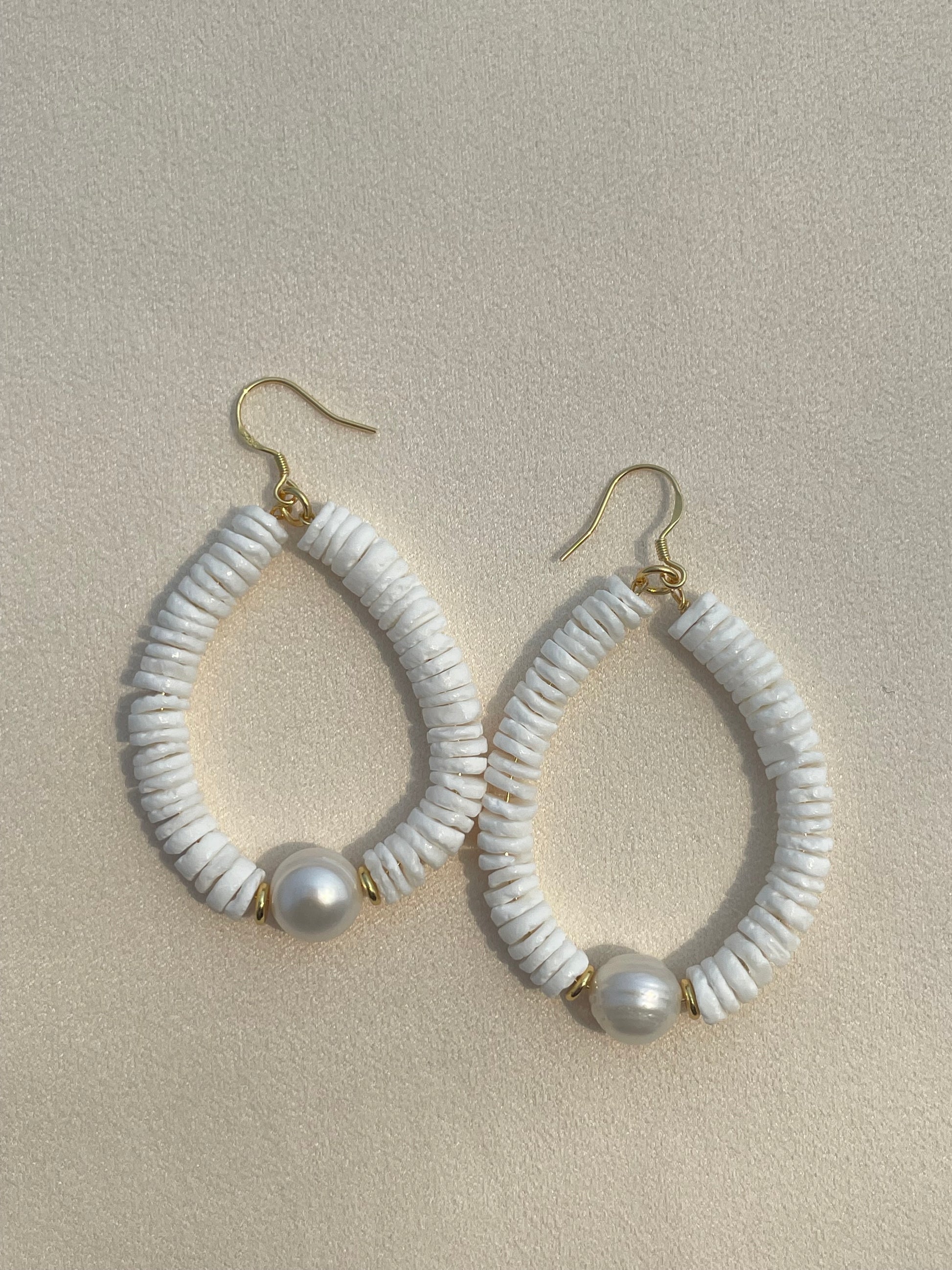 Đôi hoa tai Shella mang thiết kế tươi mới và độc đáo, lấy cảm hứng từ những bãi biển đầy nắng. Sản phẩm được làm từ vỏ sò trắng xếp thành vòng cung mềm mại, điểm xuyết một viên ngọc trai nước ngọt tinh xảo ở trung tâm. Phần móc hoa tai mạ vàng 18k cao cấp giúp tôn lên vẻ sang trọng nhưng vẫn giữ được sự tự nhiên và phóng khoáng. Đây là lựa chọn lý tưởng cho những cô nàng yêu phong cách boho chic, năng động và thời thượng.