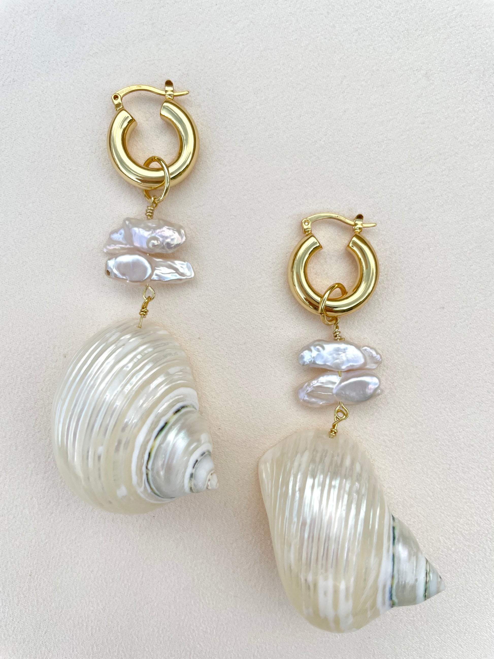 Chất liệu: Ngọc trai nước ngọt, vỏ sò tự nhiên, đồng mạ vàng 18k