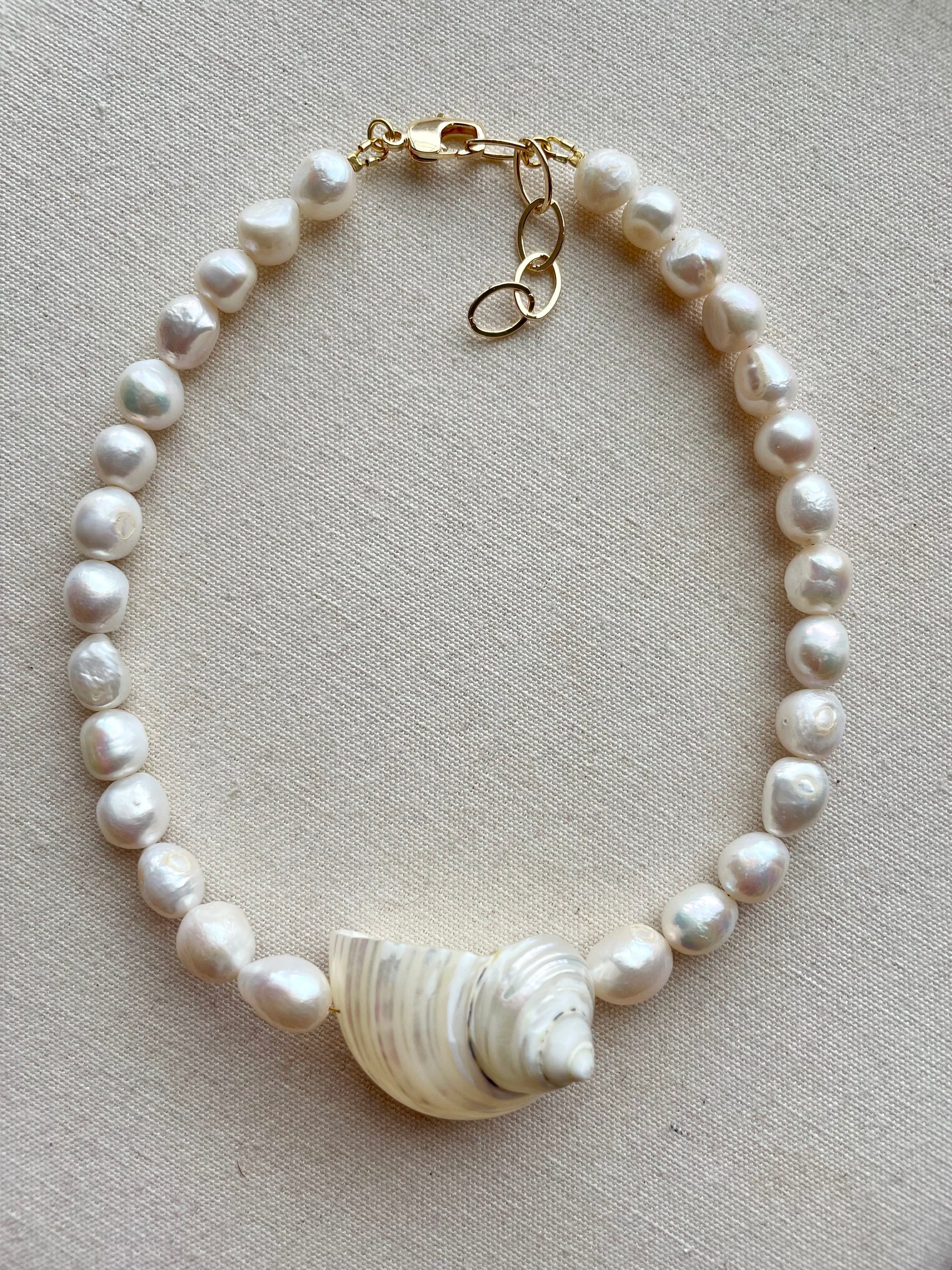 Chiếc vòng cổ ngọc trai phối charm vỏ sò tự nhiên mang thiết kế độc đáo và đầy cảm hứng từ đại dương, kết hợp giữa những viên ngọc trai nước ngọt cao cấp dáng tròn bầu óng ánh và mặt charm vỏ sò tự nhiên được tuyển chọn kỹ lưỡng. Sắc trắng ngọc của ngọc trai hòa quyện cùng những đường vân mềm mại của vỏ sò, tạo nên một tổng thể hài hòa, sang trọng nhưng vẫn phóng khoáng.