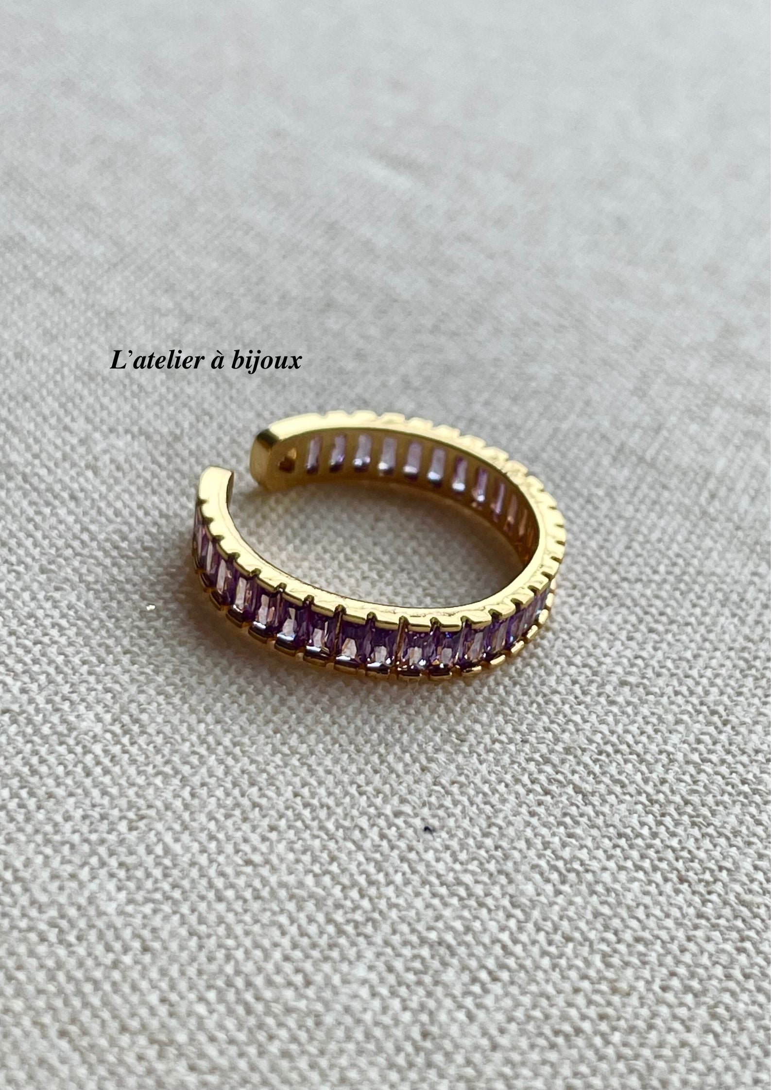 Chiếc nhẫn Violet được chế tác tinh xảo từ hợp kim cao cấp phủ mạ vàng 18K sang trọng, điểm xuyết đá zircon lấp lánh được cắt mài tinh tế, mang đến vẻ đẹp thanh lịch và hiện đại. Thiết kế bản nhẫn mảnh chỉ 0.4cm, Violet mang đến sự tinh gọn nhưng vẫn đủ nổi bật để tạo điểm nhấn cuốn hút.